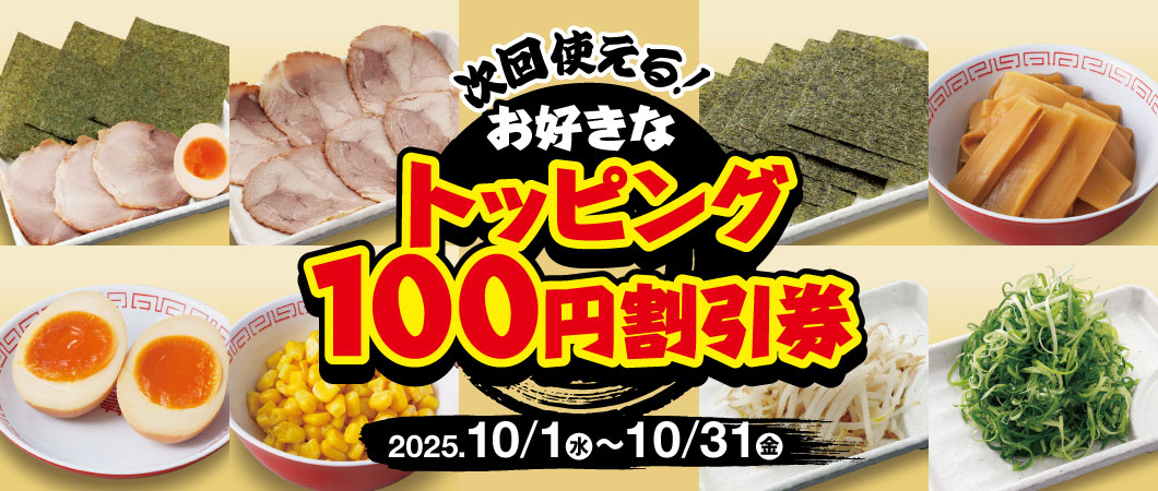 【お好きなトッピング100円割引券】2025年10月1日~配布!