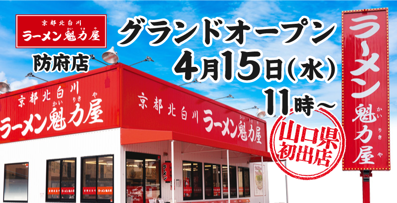 この度、「京都北白川 ラーメン魁力屋 防府店」(山口県防府市)を2026年4月15日(水)にオープンいたします。